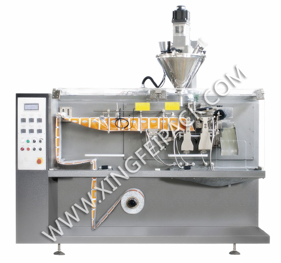 特點:本機采用電腦控制,具有生產效率高,適應性強,可靠性穩定性高,包裝的產品外觀挺直美觀封口處不沾液,不沾粉,牢固不破,封口強度高等特點,是食品,制藥,日化,農藥和飼料等行業理想的包裝機械。